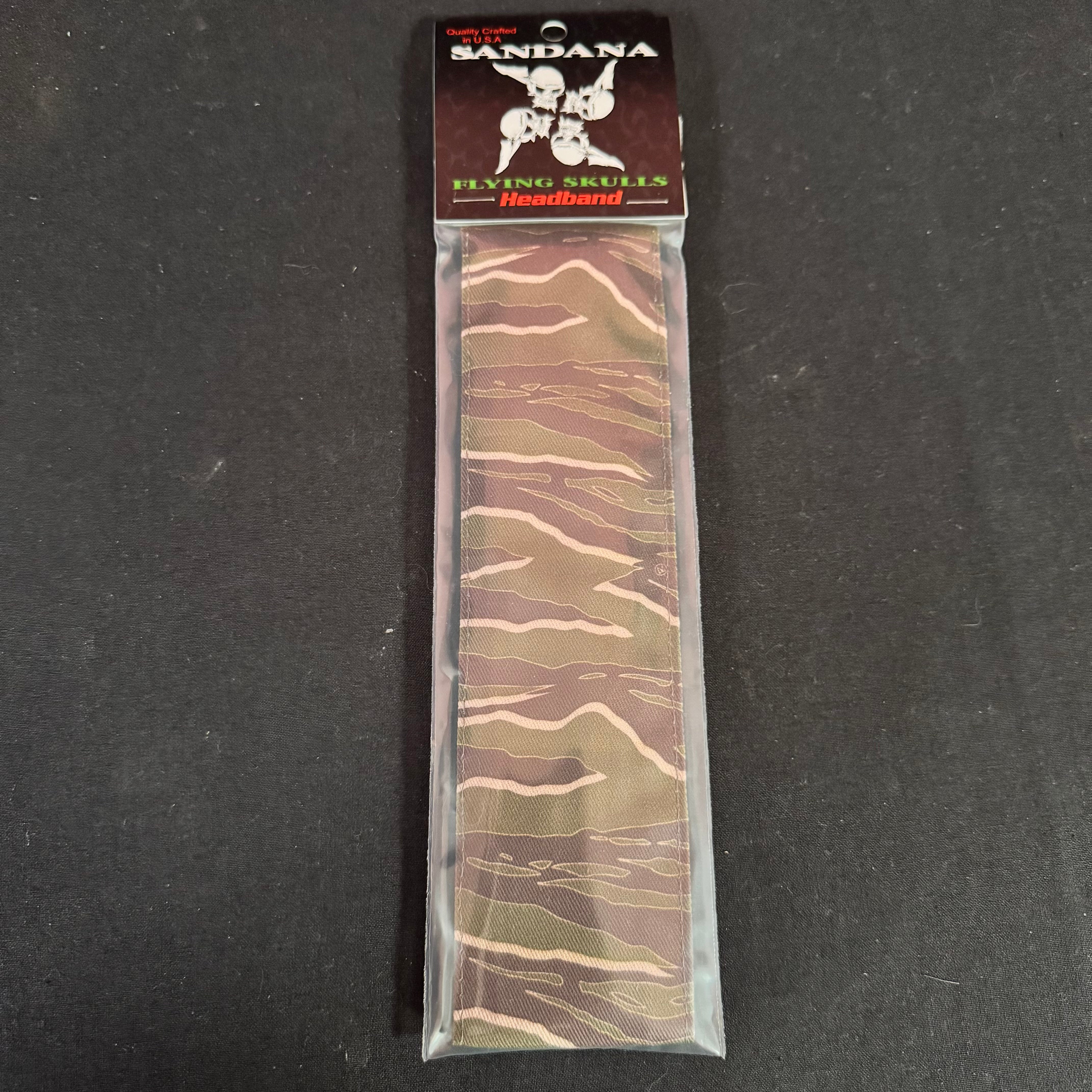Sandana Headband Flying Skulls - "Tiger Stripe" - Olive/Brown *VERTICAL*