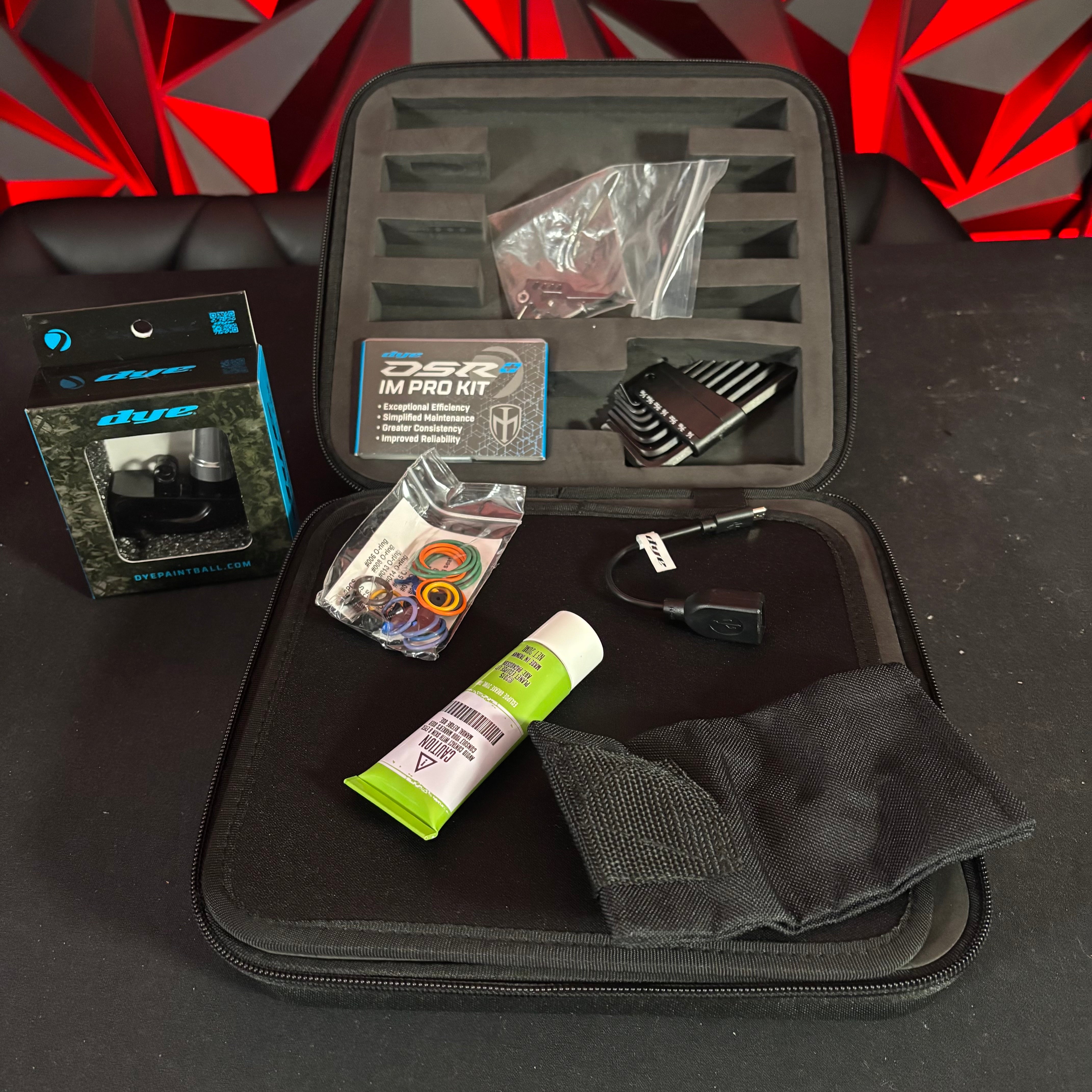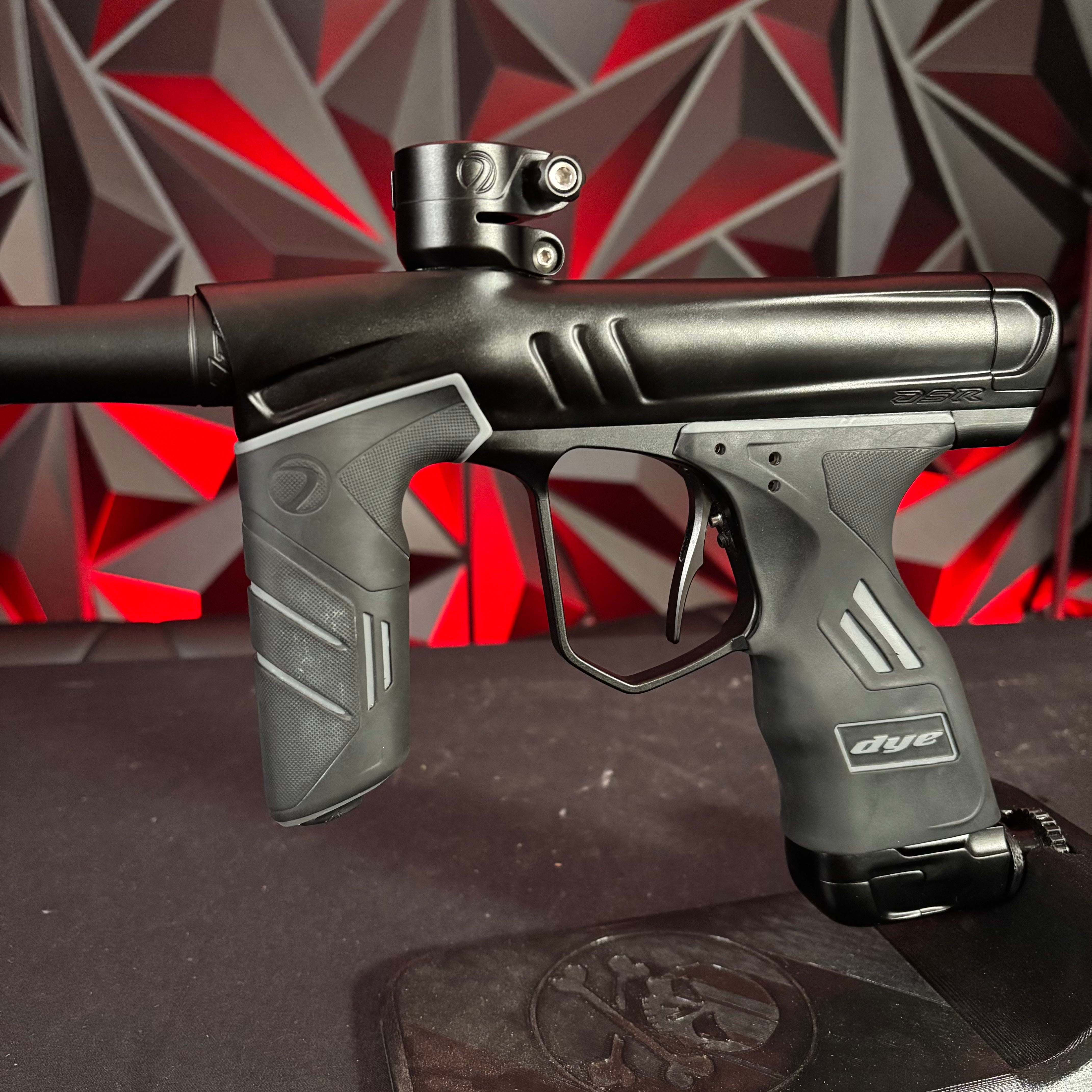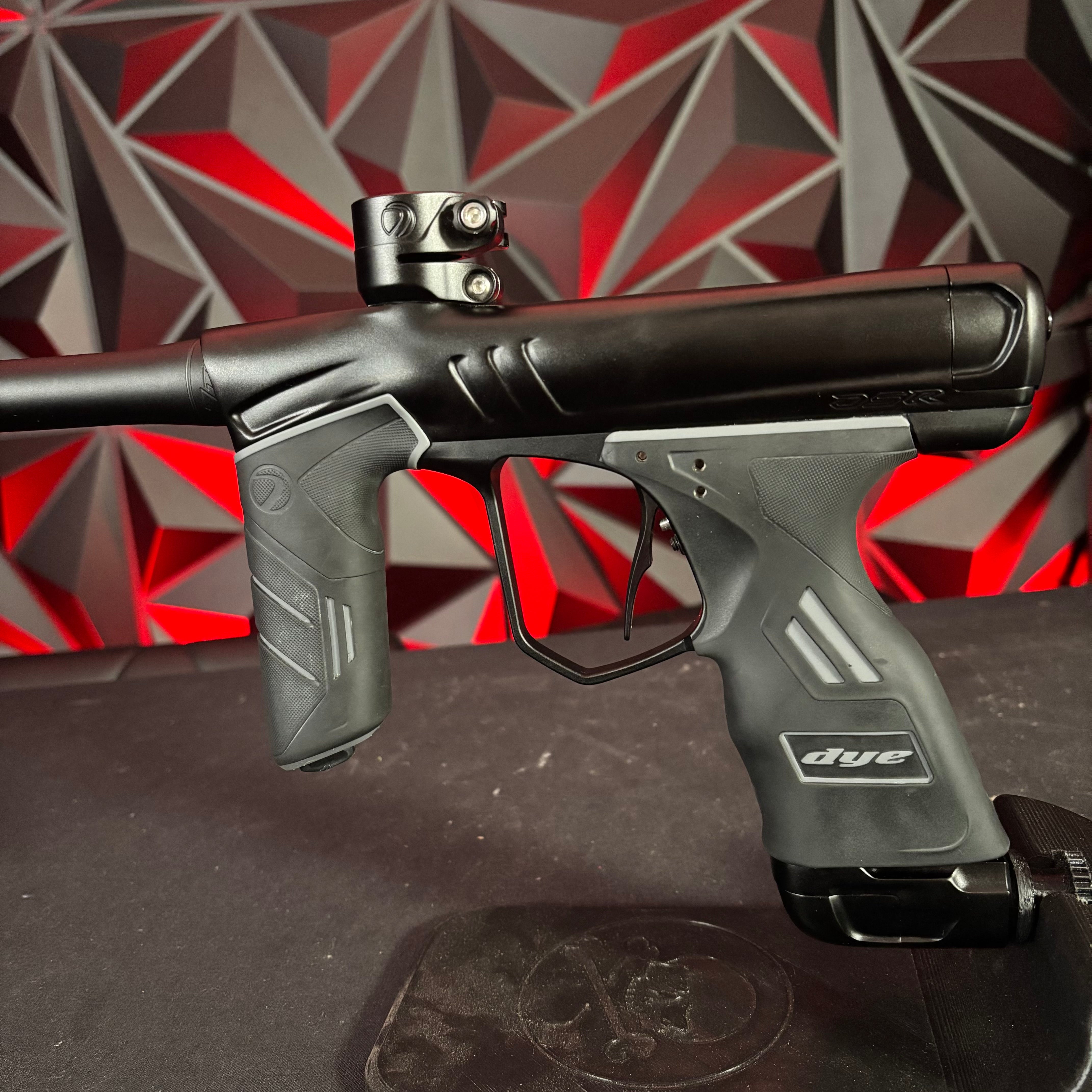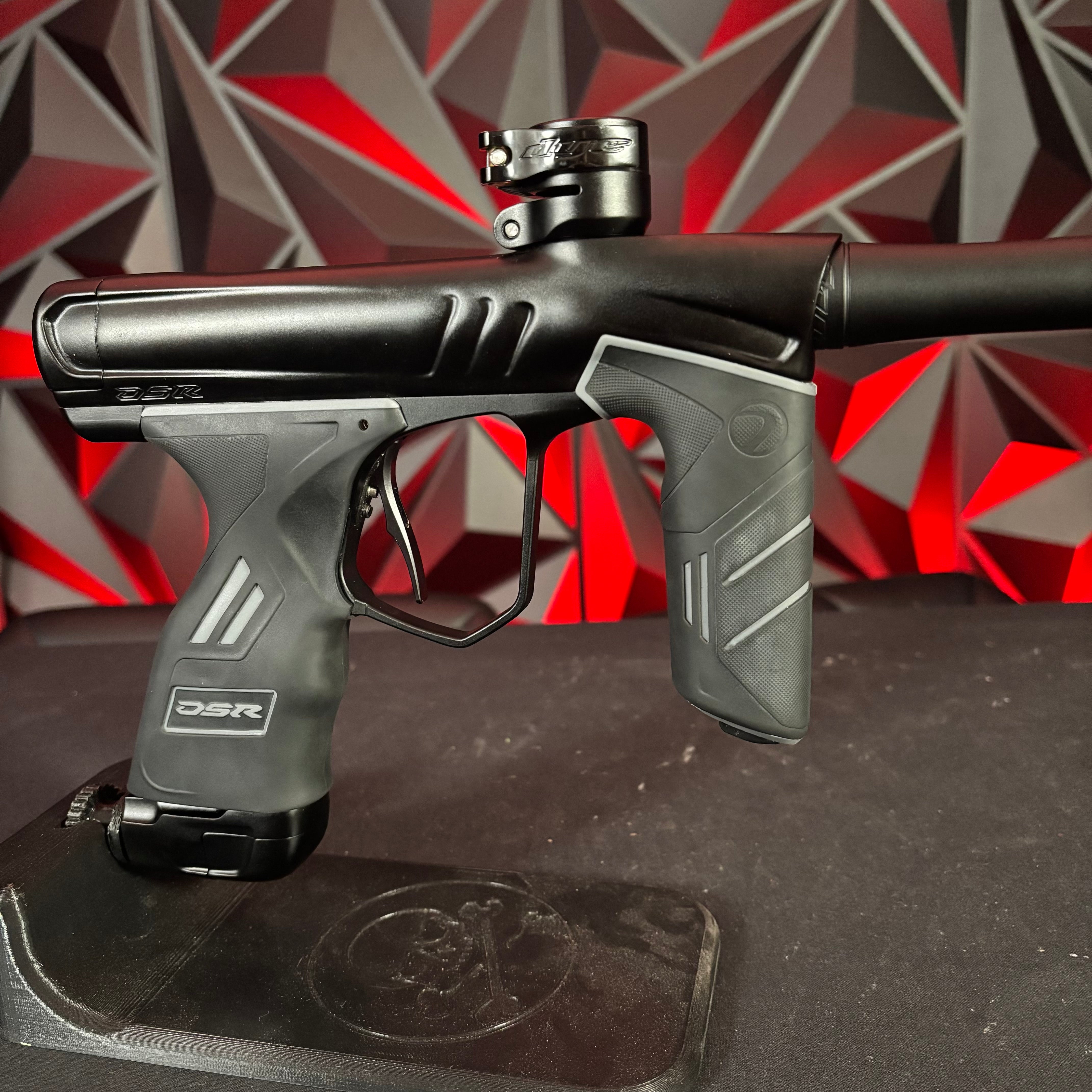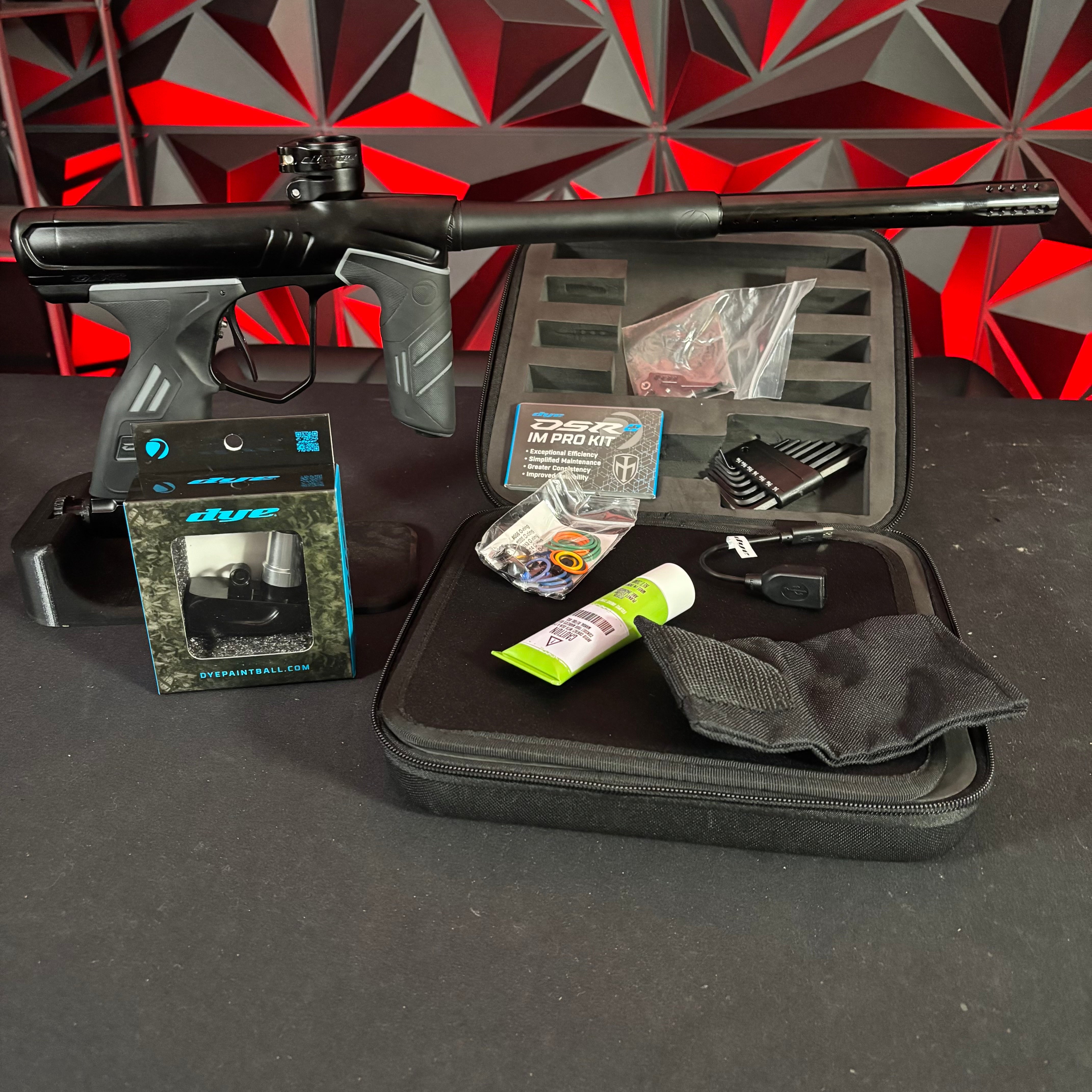 Used Dye DSR+ Paintball Gun - Silver Night (Part Swapped w/Black Barrel) w/ IM Pro Kit and Scythe Trigger and ASA slap 2 installed