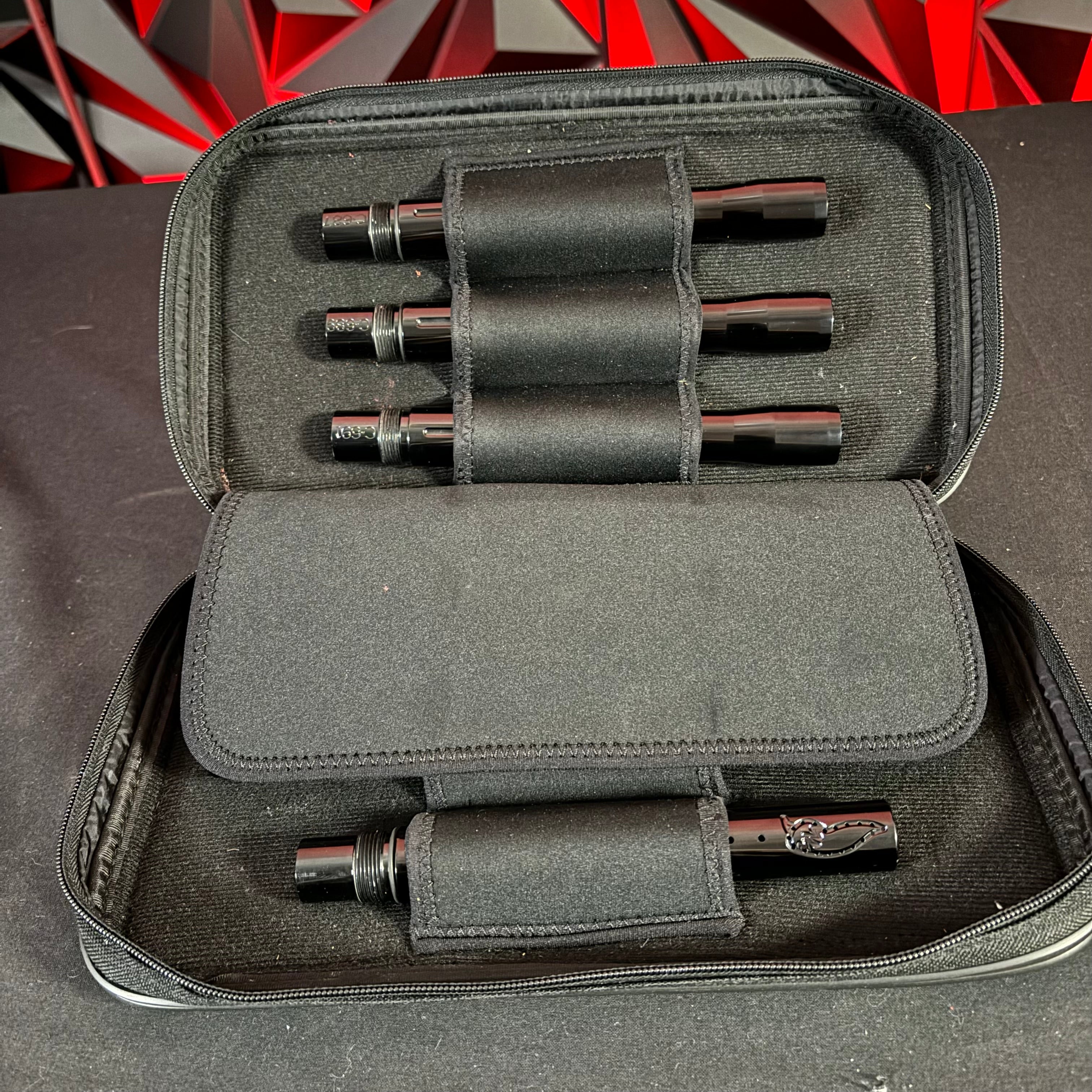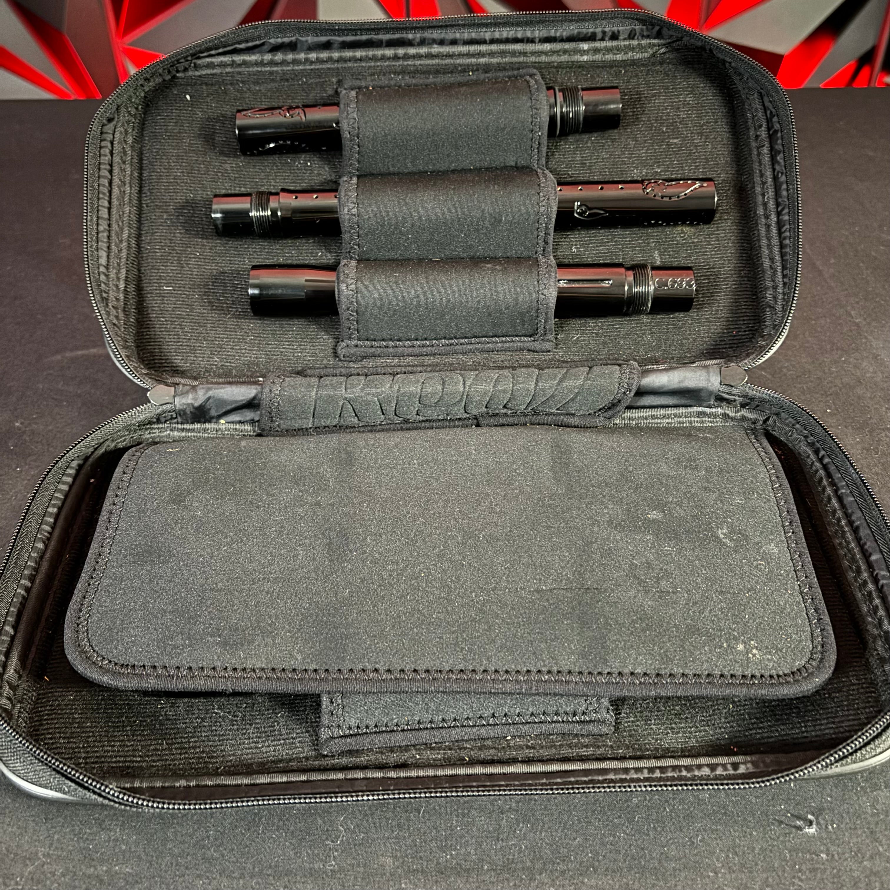 Marker cases are offered by popular companies including Exalt, HK Army, and more. These marker cases are nice for paintball guns that may not have a case. They can also be used as a substitute to the original gun case. Different portions of the marker cases allow you to put your Allen keys, lube, and paintball barrels in separate portions to keep everything neat. Not only does it keep everything organized but it keeps everything protected!