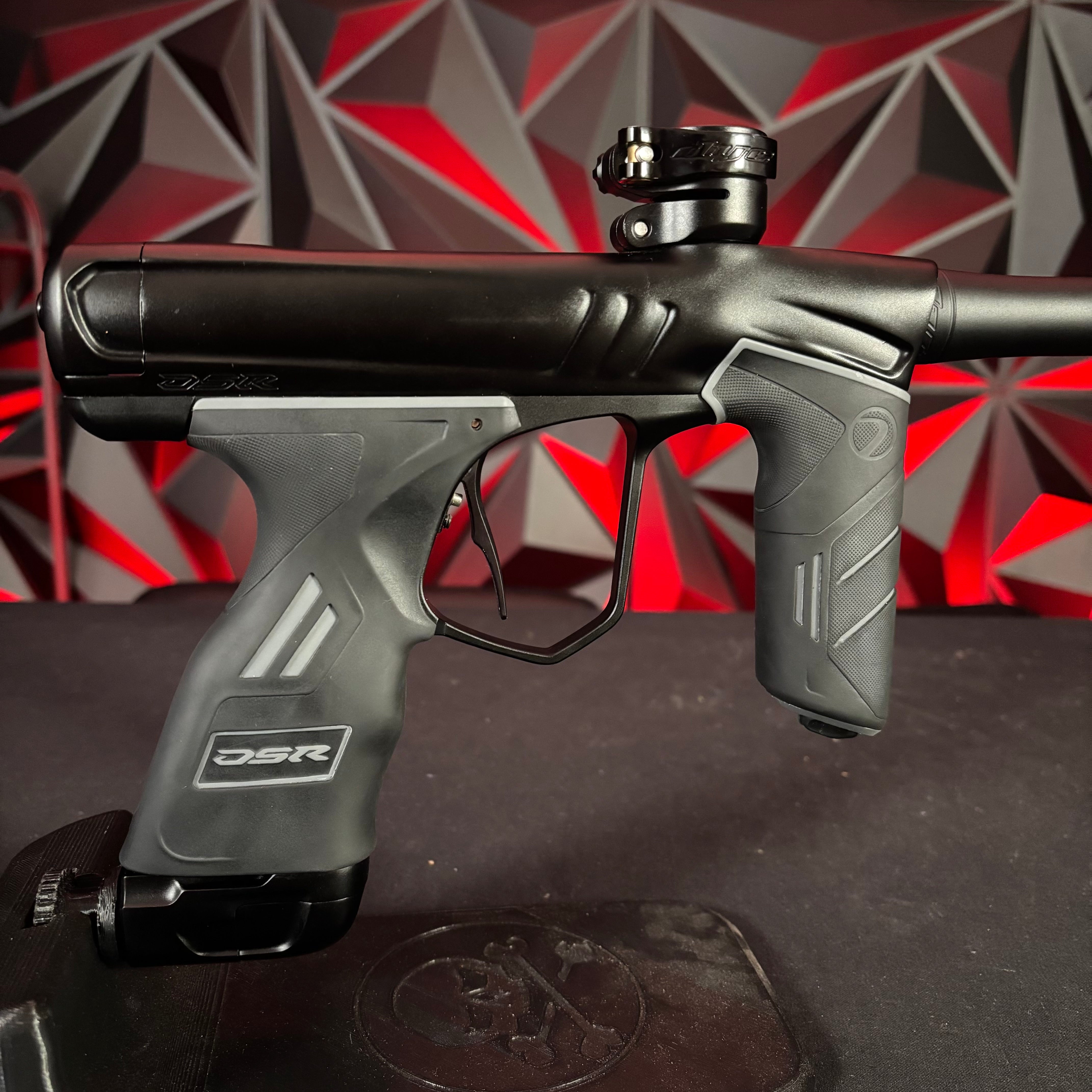 Used Dye DSR+ Paintball Gun - Silver Night (Part Swapped w/Black Barrel) w/ IM Pro Kit and Scythe Trigger and ASA slap 2 installed
