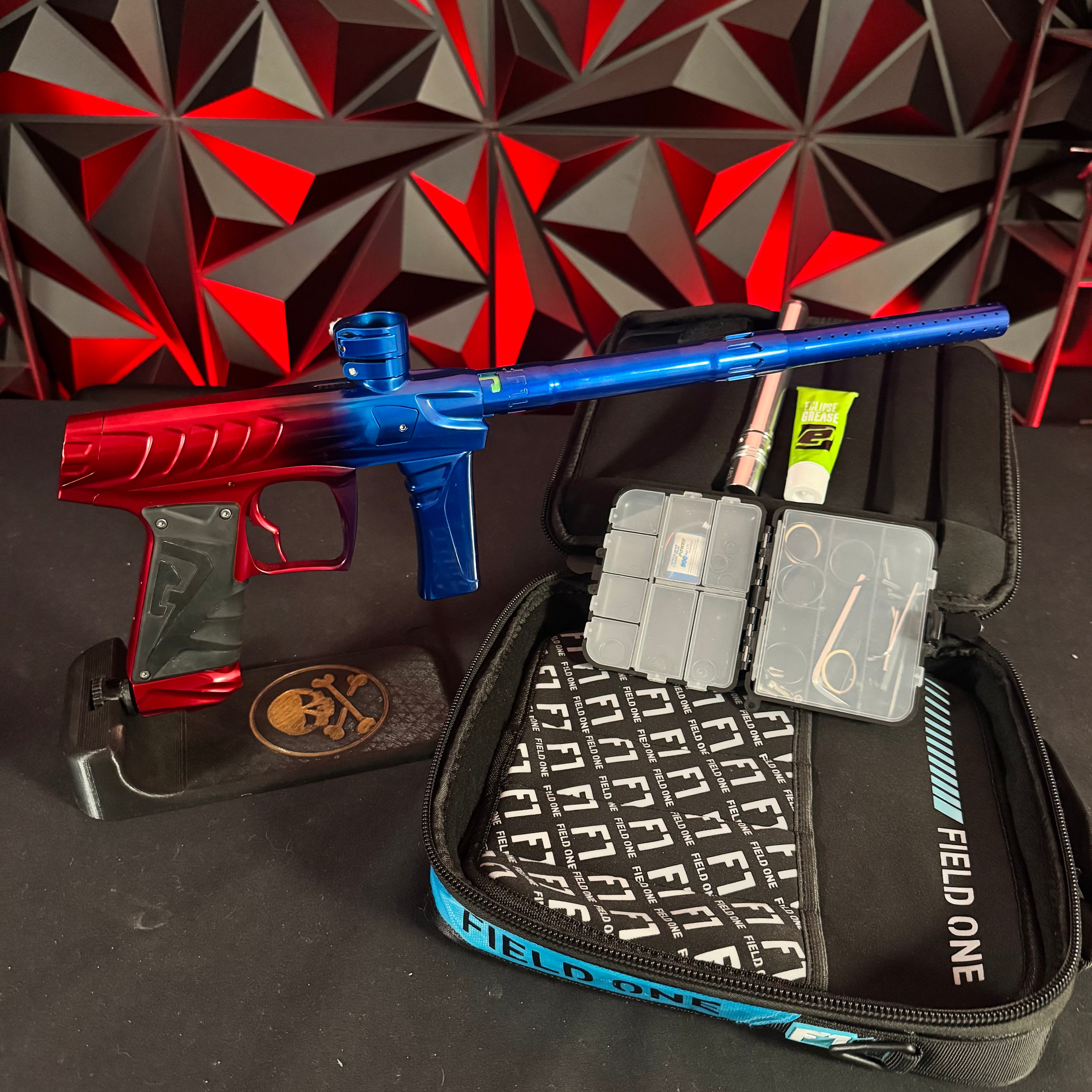 Used Field One Force Paintball Gun - Red/Blue Polished Fade w/ V2 upgrades