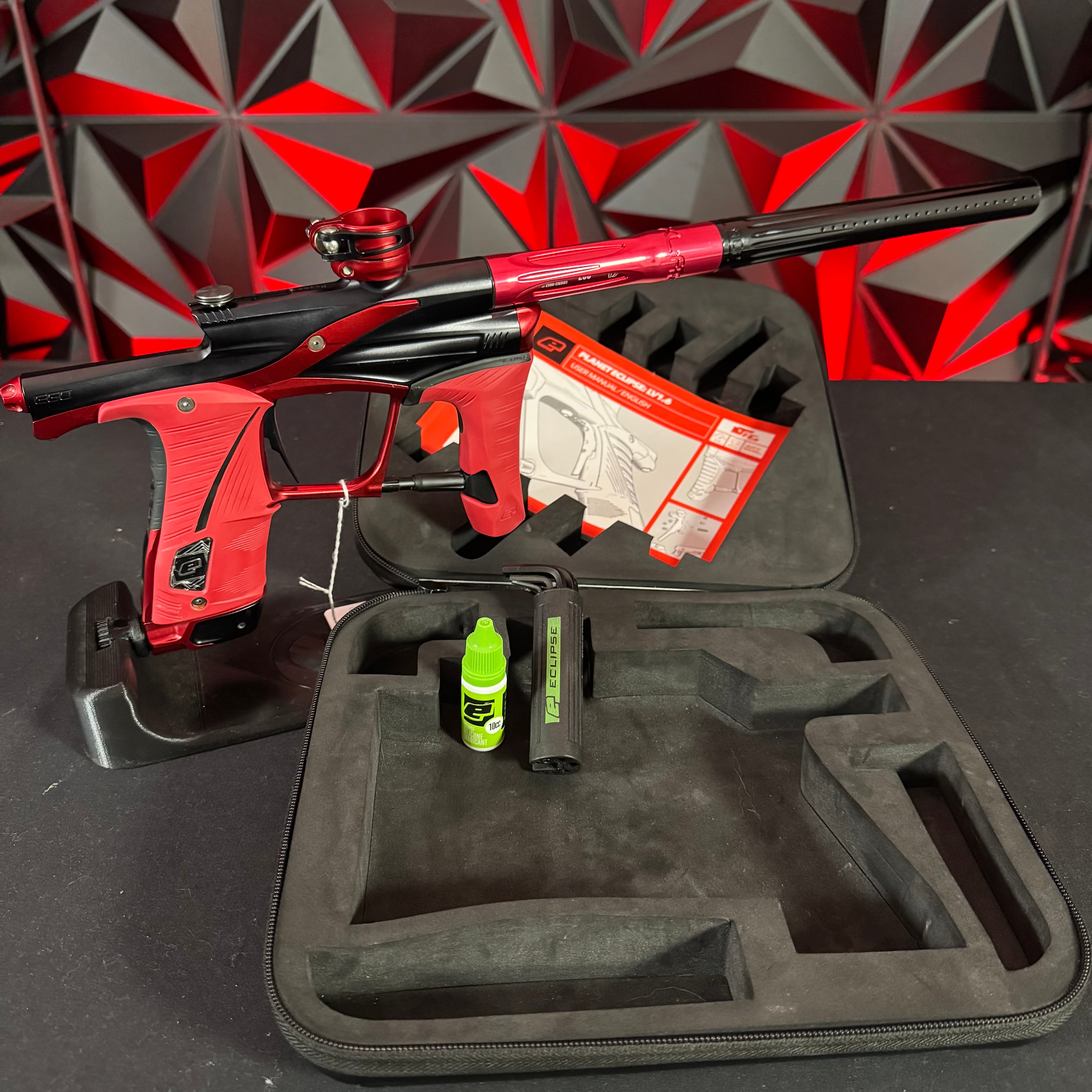 Used Planet Eclipse LV1.6 Paintball Gun - Black/Red w/ Freak XL Barrel