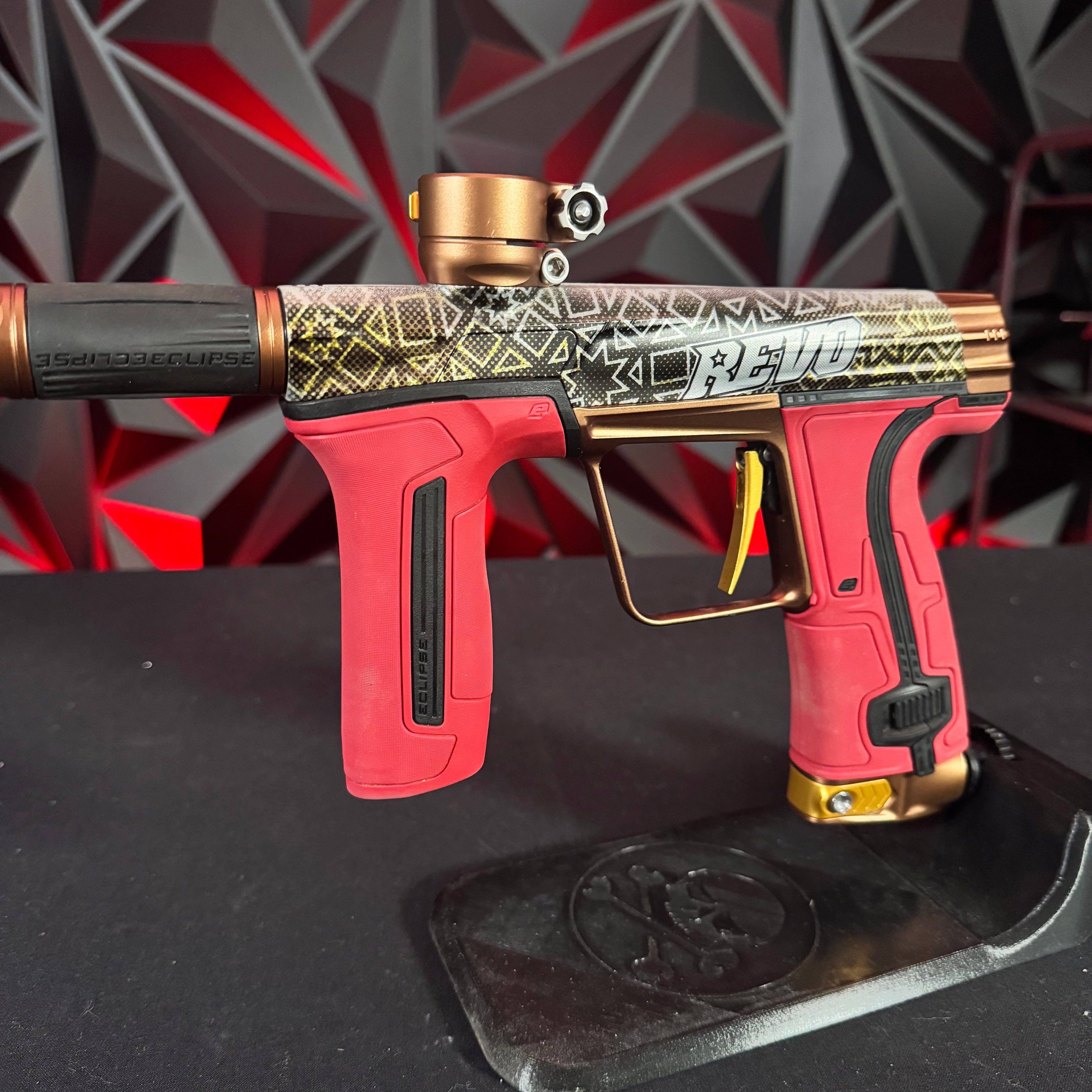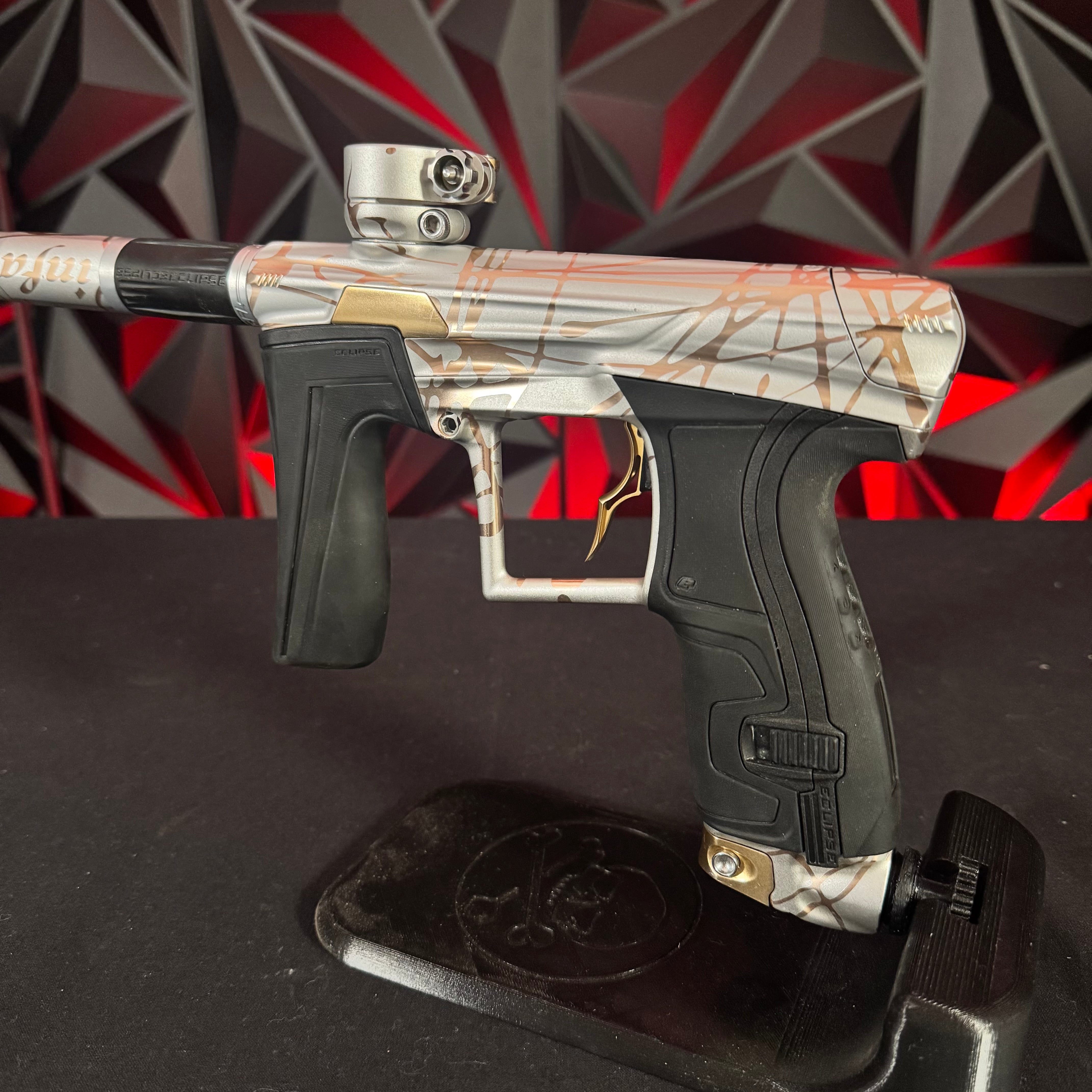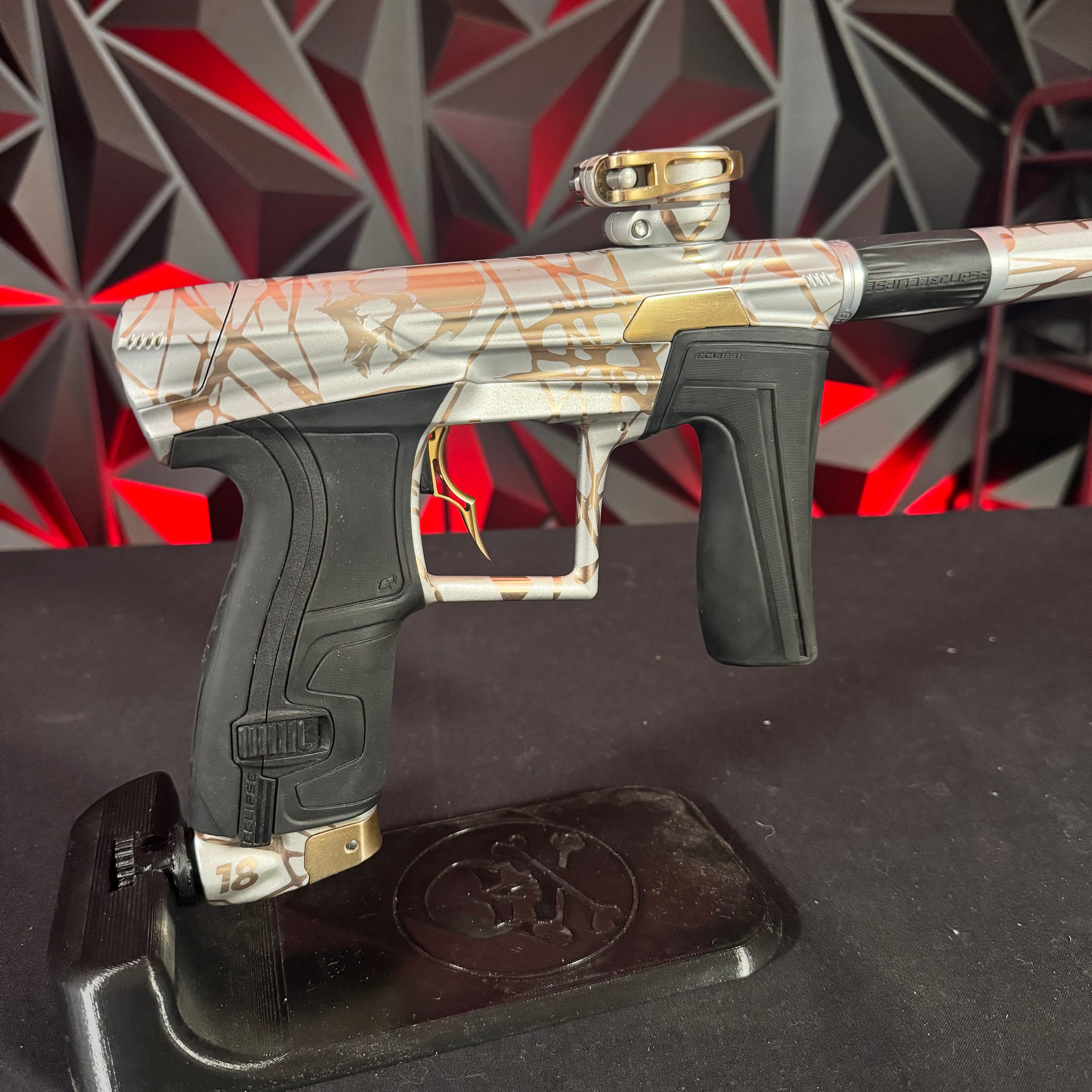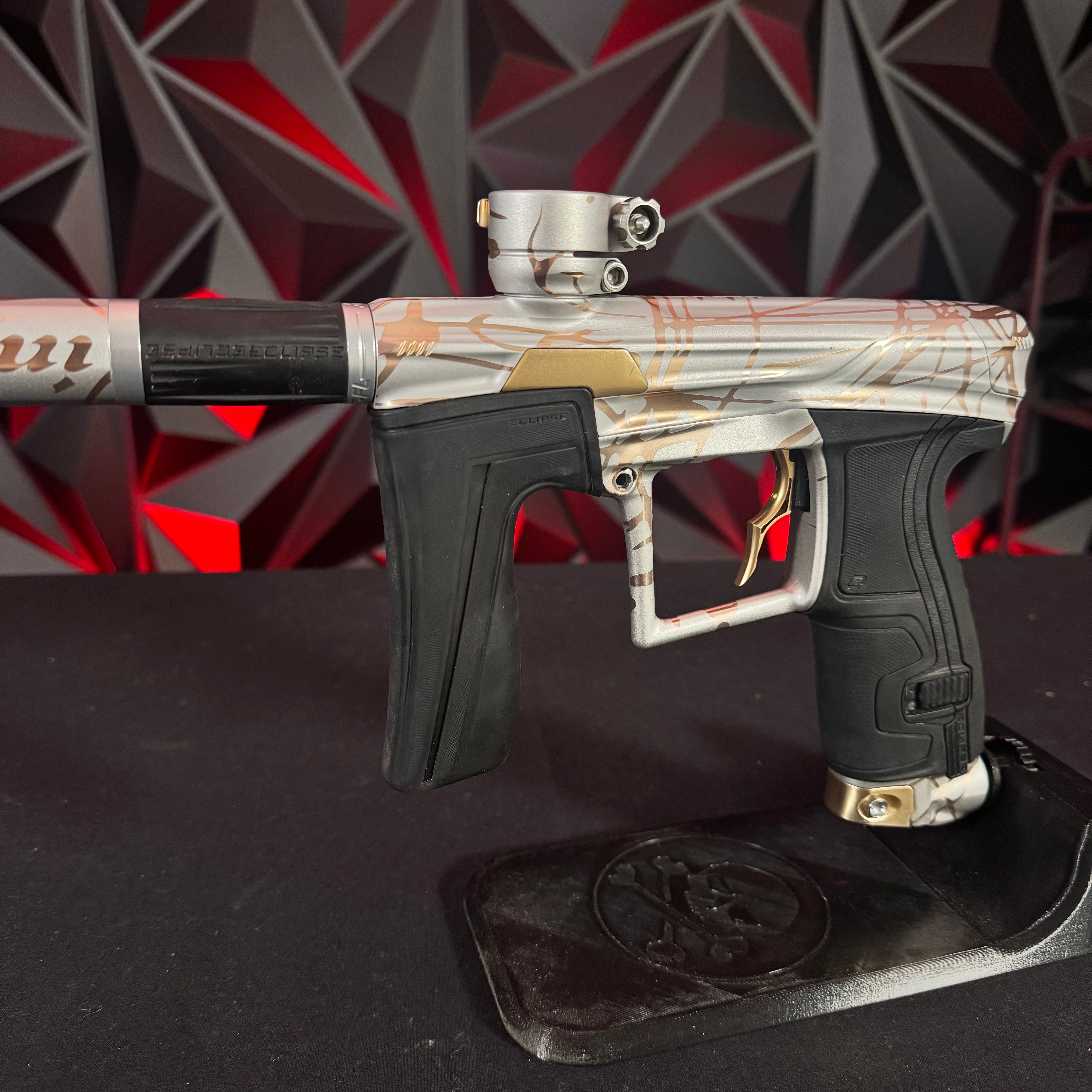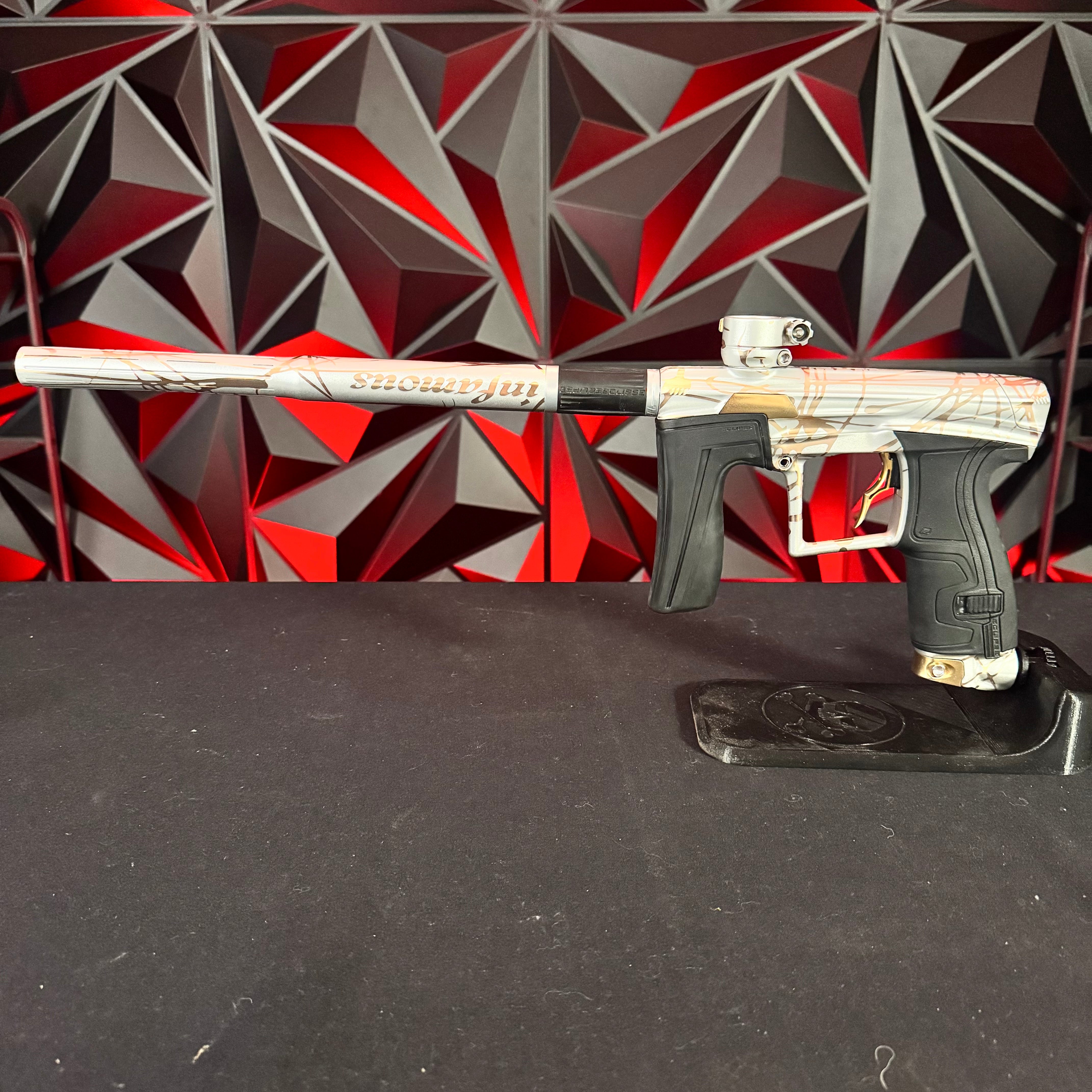 Used Planet Eclipse Geo 4 Paintball Gun - White/Gold Infamous Skull Splash