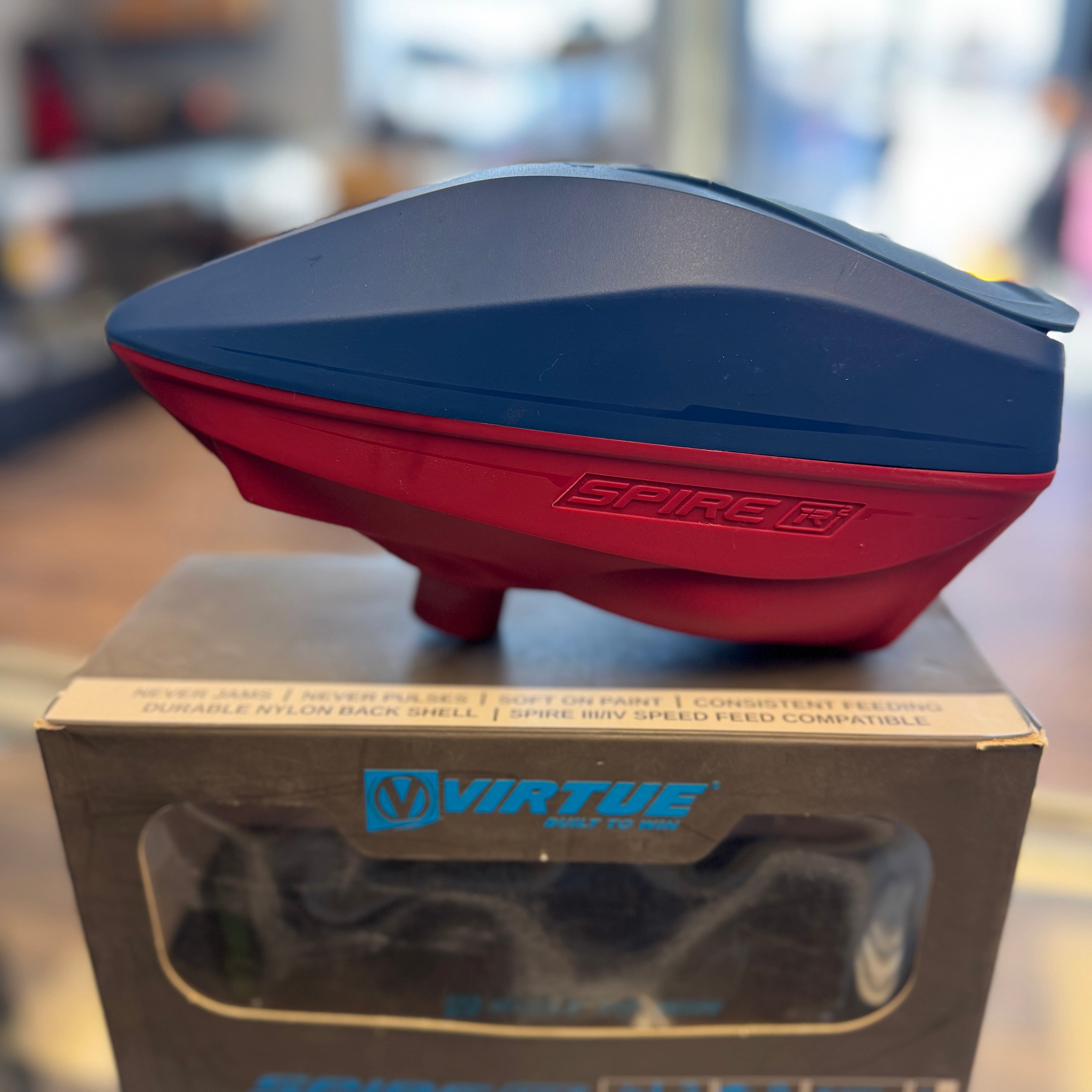 The Virtue Paintball Spire Loader has changed paintball forever. The latest and greatest paintball Hopper to hit the market is a top choice of all pro players and recreational paintball players.