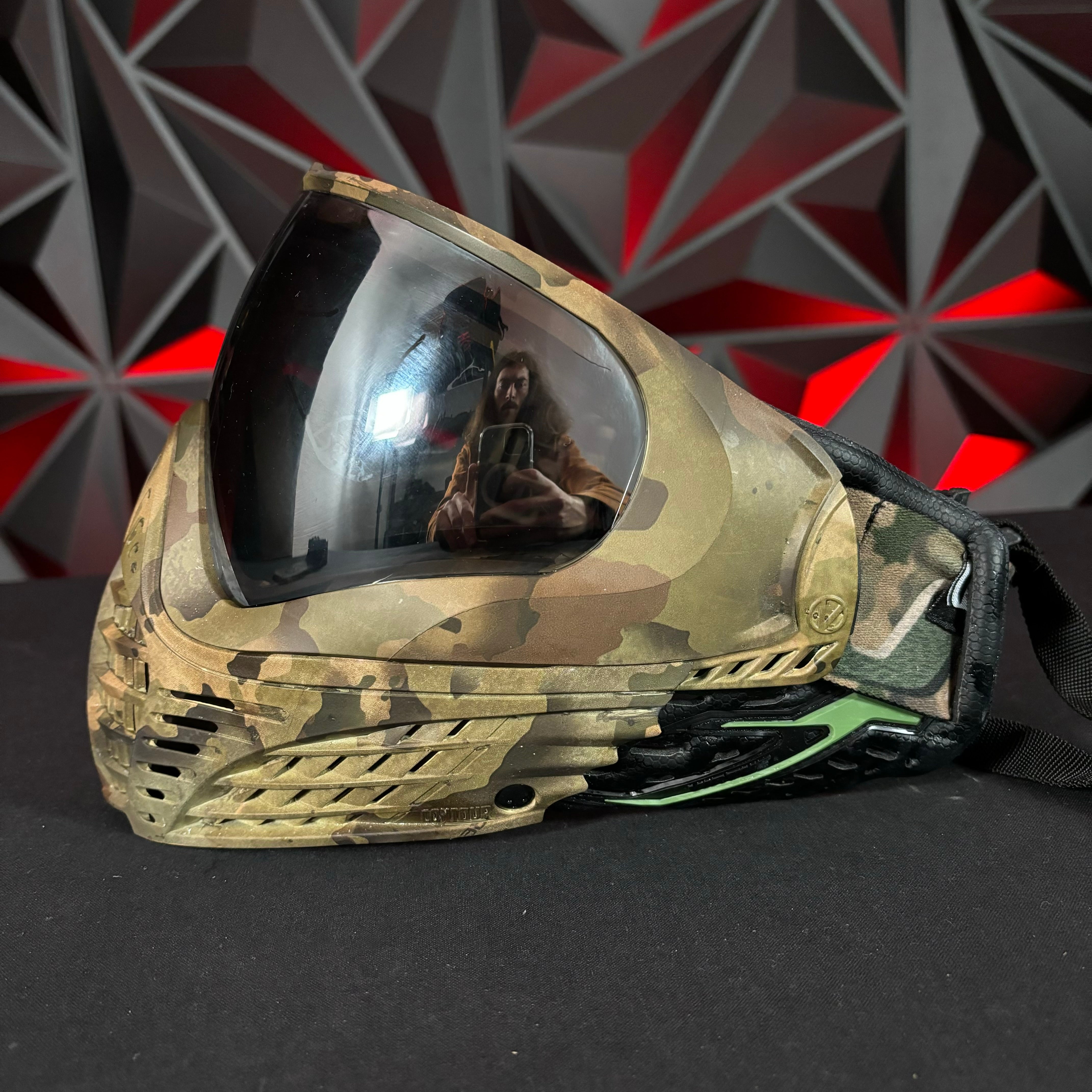 Used Virtue Vio Contour 2 Paintball Mask - Highland Camo w/Soft Goggle Bag