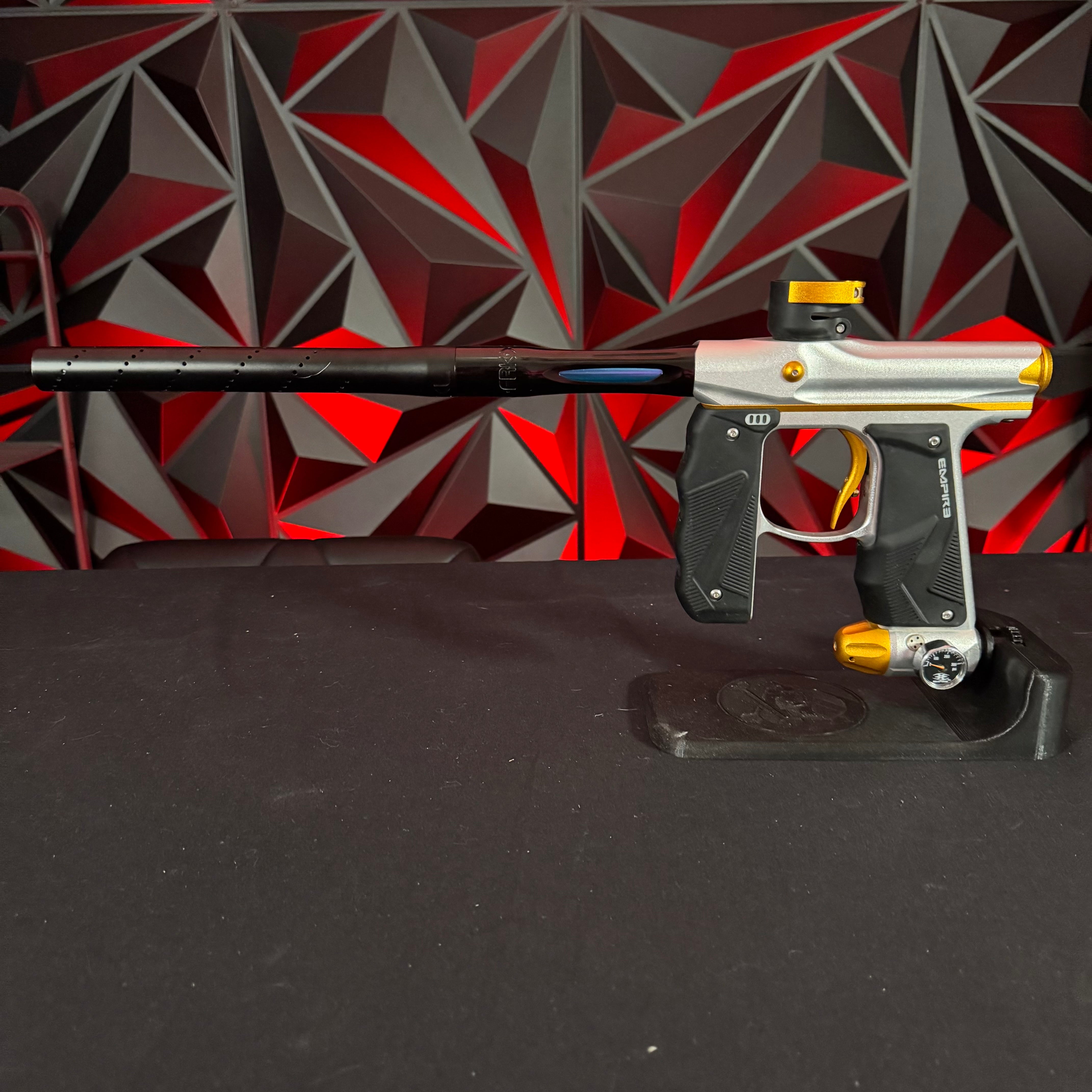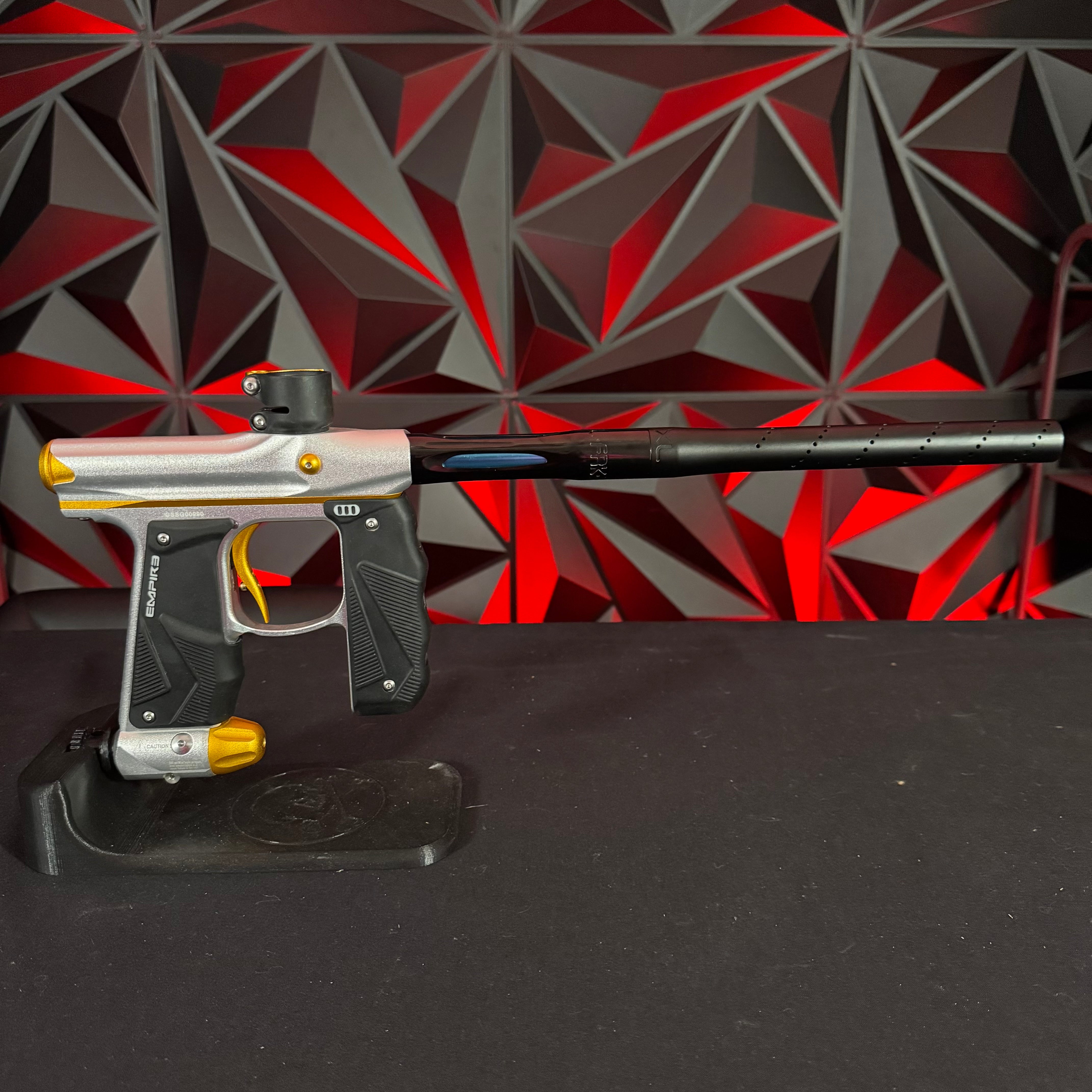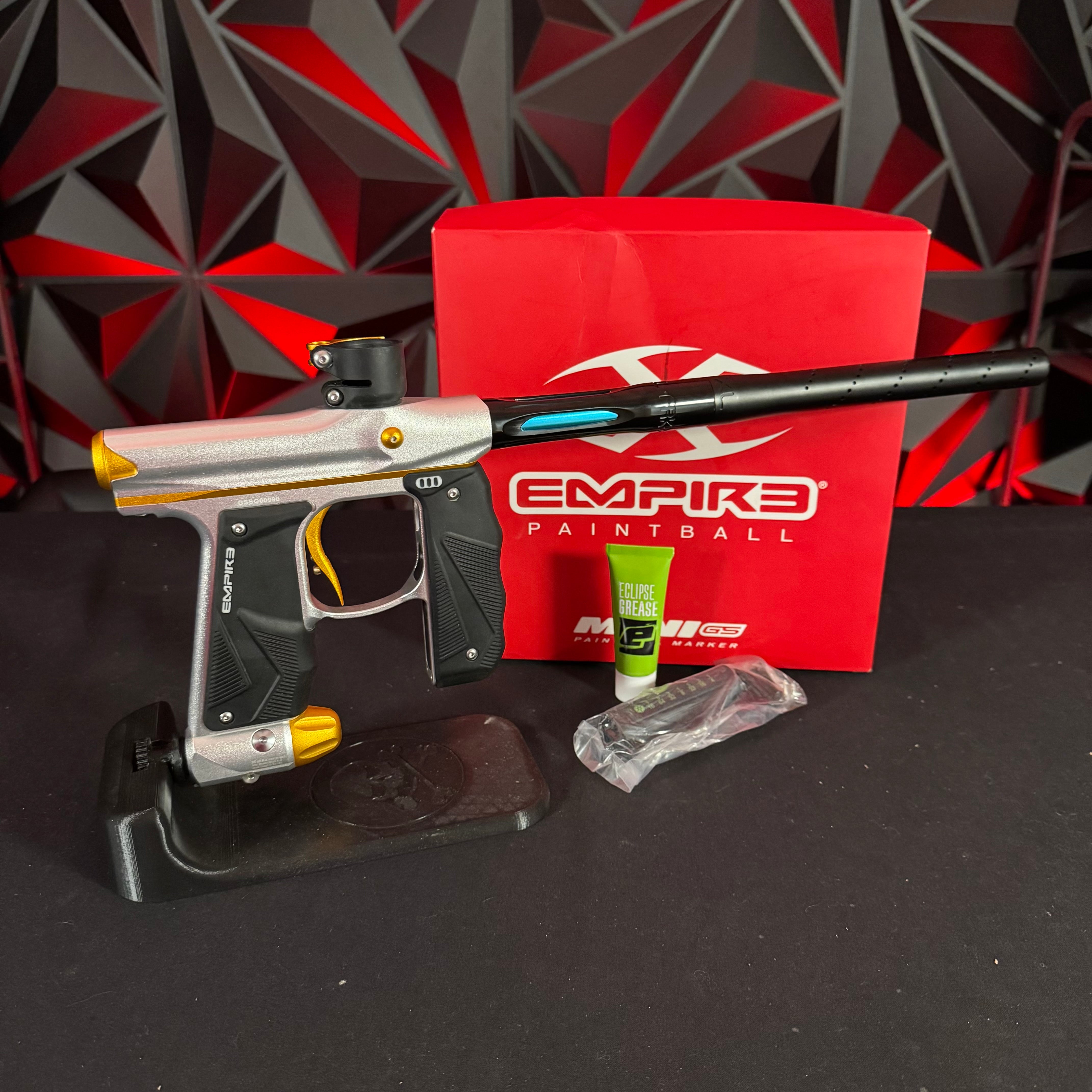 Used Empire Mini GS Paintball Gun - Dust Silver/Dust Gold w/Freak XL Barrel System