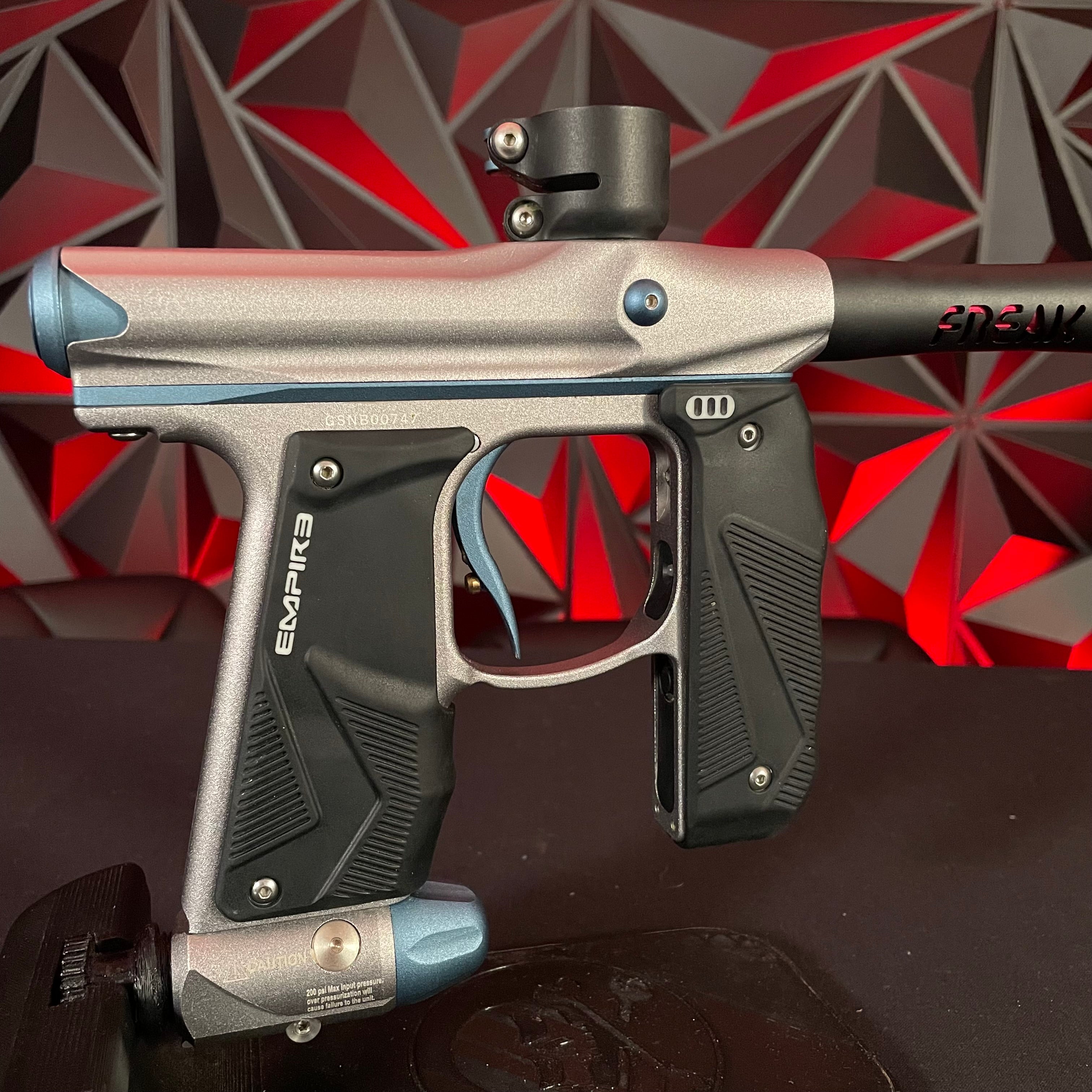 Used Empire Mini GS Paintball Gun - Grey/Blue w/Freak Jr Barrel
